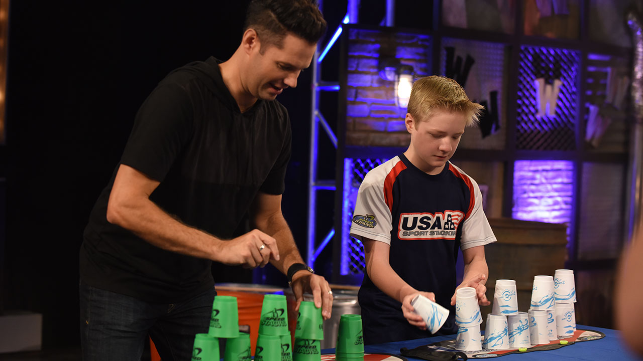 And to close out the show, we had World Champion Sport Stacker PJ Ball… Can David keep up? (Spoiler alert: no. No, he can’t.)